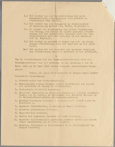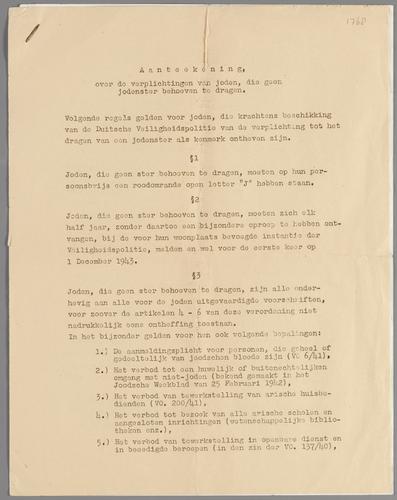 Notitie over de verplichtingen van joden die geen jodenster behoeven te dragen