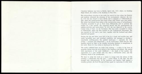 Tentoonstellingsbrochure van de Charlotte Salomon-tentoonstelling in het Dizengoff House (Tel Aviv Museum), 1962