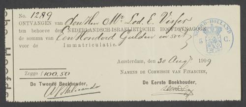 Ontvangstbewijzen (8) op naam van L.E. Visser t.b.v. NIHS