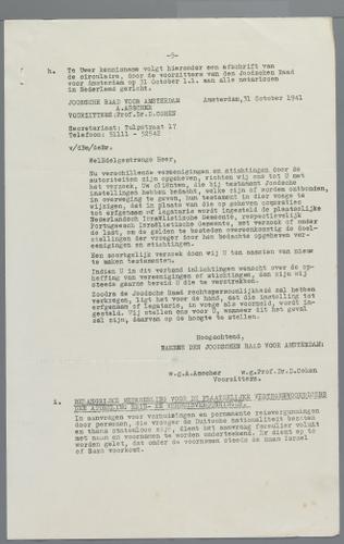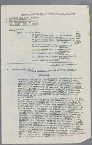 Interne circulaire van de Joodse Raad m.b.t. onderwijs en oorlogsschade, december 1941