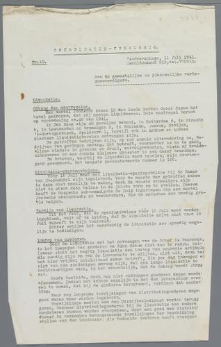 Circulaire van de Joodse Coordinatie Commissie over de liquidatie van bedrijven, juli 1941