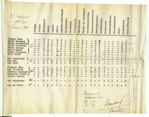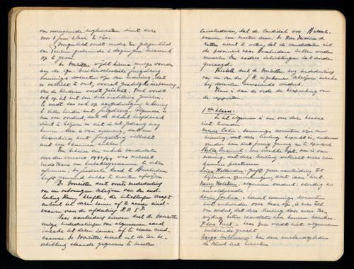 Cahier met handgeschreven notulen van het Joods Lyceum te Utrecht, december 1941 - april 1943