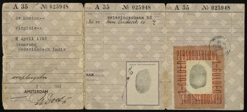 Vals persoonsbewijs van Virrie Cohen op naam van Virginie de Koning, 1941