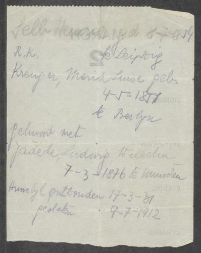 Dossier met onder andere persoonlijke documenten (8) ten name van diverse onbekende personen, 1939-1973