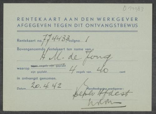 Documenten (7) met betrekking tot het dienstverband en eervol ontslag van Leny de Jong bij de Nederlandse Spoorwegen, 1942-1945