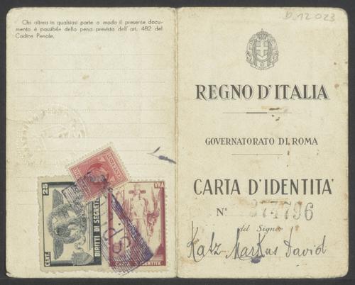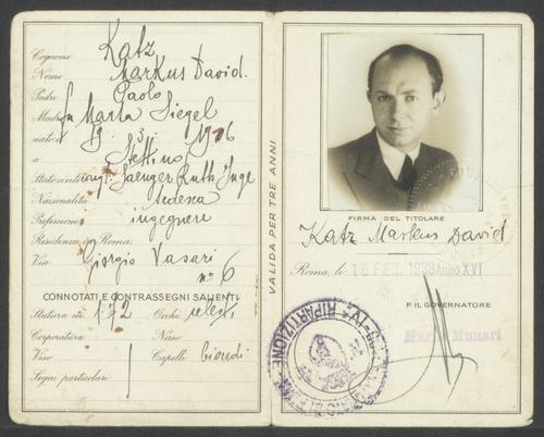 Italiaanse identiteitskaart van David Markus Katz, 1938
