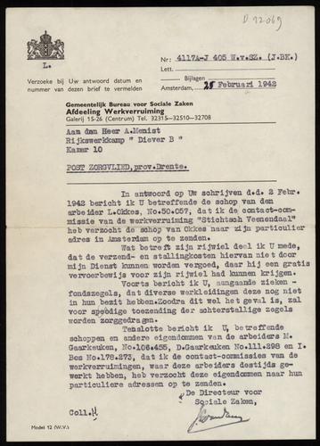 Brieven (4) van het gemeentelijk bureau voor sociale zaken aan A. Menist over gereedschap, fietsen en eventuele terugkeer naar Amsterdam van in werkkamp Diever verblijvenden, 1942