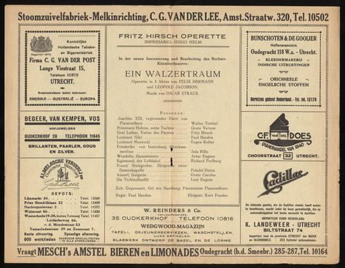 Programmaboekje van de voorstelling "Ein Walzertraum" van de Fritz Hirsch Operette, met foto's van acteurs, 1926-1927