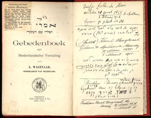 Gebedenboek uit de nalatenschap van Henriëtte Hoogstraal-de Haan (1888-1943) met aantekeningen over geboortes en sterfgevallen, 1901