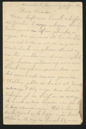 Briefkaarten (2) van J. van Oosten waarvan één uit Westerbork en één uit de trein gegooid, 1943
