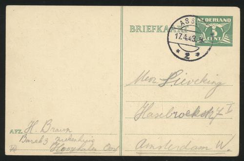 Briefkaarten (2) van Herbert Braun uit Westerbork aan de familie Sieveking in Amsterdam, 1943