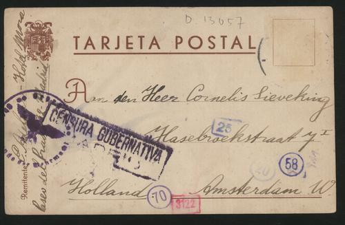 Briefkaart van P. Adelaar uit Madrid aan de heer C. Sieveking in Amsterdam, 1942