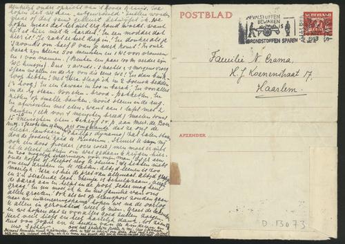 Ongecensureerde brief van mevr. Esther Davids-Roos vanuit Westerbork aan haar oude buren in Haarlem, de familie N. Crama, over het onaangename leven in het kamp, 1943