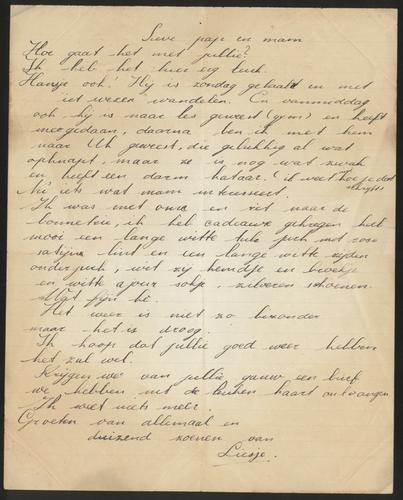Brief en enige briefkaarten van Liesje Bloch geschreven vanuit het huis van haar grootmoeder Leentje Elte-Blok in Scheveningen aan de Badhuisweg 29 aan haar ouders tijdens hun vakantie, ca. 1939