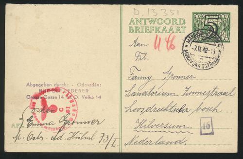 Briefkaart van Emil Gronner aan Fanni Gronner in sanatorium Zonnestraal in Hilversum, 1942