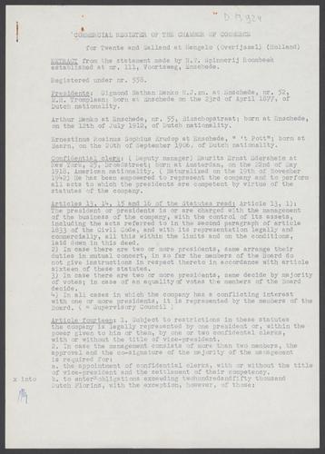 Engelstalige inschrijving (2) in de Kamer van Koophandel van Hengelo van de Spinnerij Roombeek, 1956