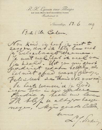 Documenten met betrekking tot Ella Cahen, 1912-1926