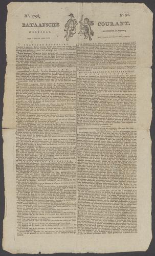 Bataafsche Courant met bericht over de gelijkberechtiging van de joden, 1796