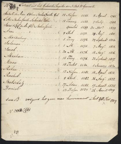 Genealogische aantekeningen (3) met betrekking tot de familie Belinfante, ca. 1830
