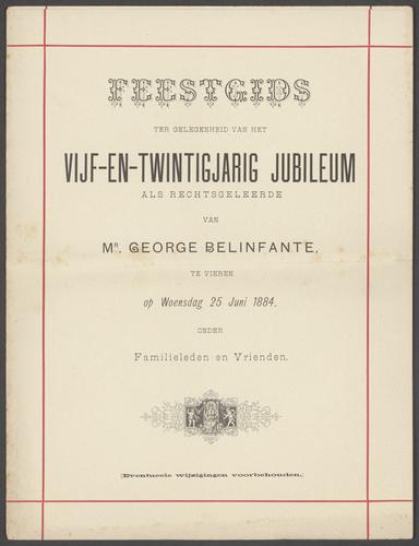 Feestgids ter gelegenheid van het 25-jarig jubileum als rechtsgeleerde van Mr. George Belinfante op woensdag 25 juni 1884