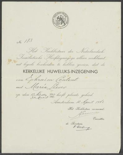 Ketoeba Ephraim Content en Maria Leever en enige losse documenten, 1942
