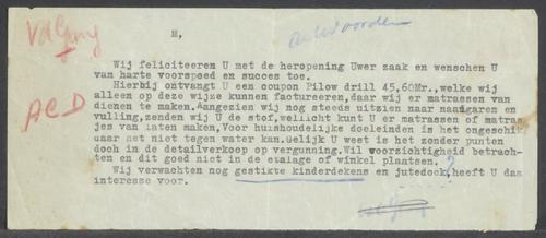 Fotokopieën van brieven (5) met felicitaties met de heropening van de gebr. Zion in Eibergen, 1945