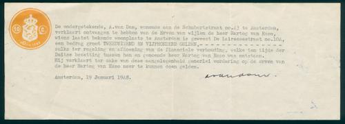 Verklaring van A. van Dam dat hij 2500 gulden heeft ontvangen van de erven Hartog van Esso, 1948