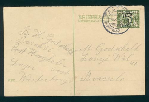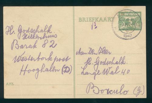 Brieven (9) en briefkaarten (5) van Hartog en Betsy Godschalk vanuit Westerbork aan hun famiilie in Borculo en enkele uit de treingegooide kaarten en briefjes, 1943