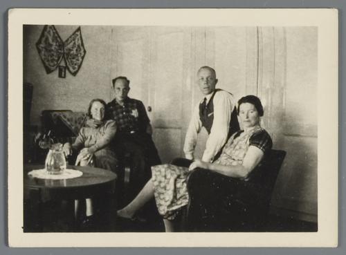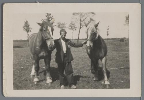 Groepsfoto voor de barak in werkkamp 'de Landweer' in Elsloo, 1942
