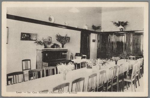 Prentbriefkaart van de eetzaal van de Isr. Gezondheidskolonie 'Rotterdam" in Leur uit de nalatenschap van Elisabeth Cohen, circa 1925