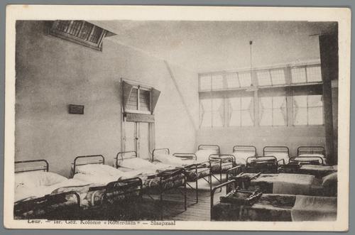 Prentbriefkaart van een slaapzaal van de Isr. Gezondheidskolonie 'Rotterdam" in Leur uit de nalatenschap van Elisabeth Cohen, circa 1925