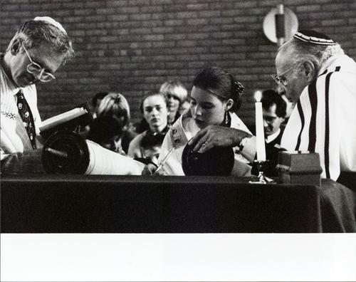 meisje leest uit de tora, Liberaal Joodse Gemeente Arnhem,1990