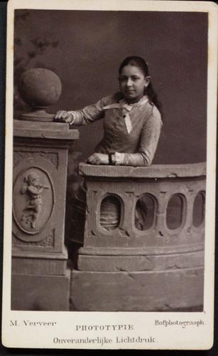 Portretfoto van een onbekend meisje, afkomstig uit het archief van de familie Belinfante, ca. 1885