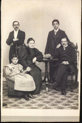 Familieportret van het gezin Frederik Joseph Belinfante (1843-1910) en Rosalia Elizabeth Hertzveld (1843-1924), met hun kinderen Johan Jacob (1874-1947), Hendrik Joseph (1879-1944) en Dora Regina Estella (1886-1977), ca. 1894