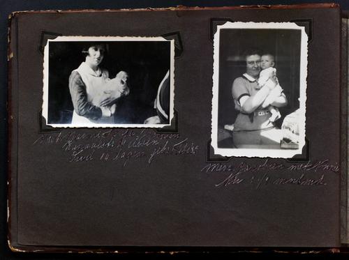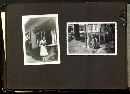 Fotoalbum (met 50 foto's en documenten, deels los) van Reina Johanna Kropveld (1914-1969), die in de wijde omgeving van Beilen als kraamverzorgster werkte, 1933-1939