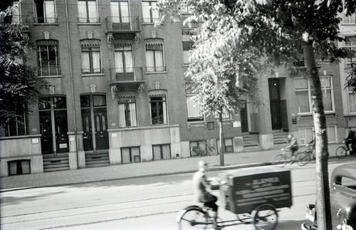 Negatief van een overzichtsfoto uit het archief van de familie Bloch met daarop hun huis aan de Sarphatistraat 88 in Amsterdam, ca. 1939