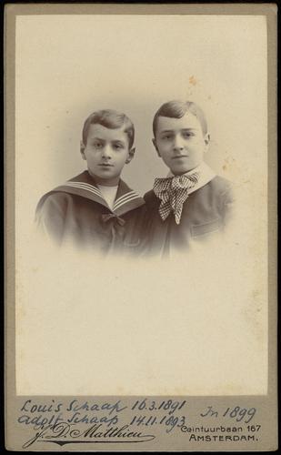 Portretfoto's (14) van de twee broers Louis en Adolf Schaap, ca. 1898-1910