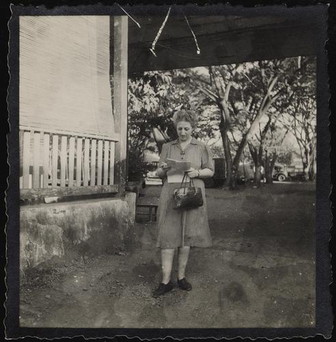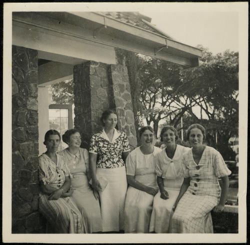 Portretfoto's (2) van Elisabeth H. Andriessen in Batavia, 1947 en een groepsfoto van zes dames, uit de nalatenschap van dr. Louis Schaap