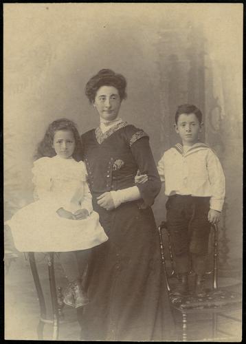 Familiefoto van Esther Diena Andriessen-Tels met haar dochter Elisabeth (Lies) en zoon Rudolf (Rudi) Andriessen, ca. 1904, uit de nalatenschap van dr. Louis Schaap