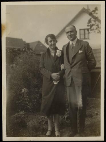 Portretfoto's (6) en pasfoto (1) van dr. Louis Schaap en zijn vrouw Johanna Schaap-Andriessen, ca. 1929-1940