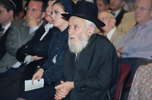 Foto's (2) van een herdenkingsbijeenkomst in het Joods Cultureel Centrum voor de dood van vijf leden van de Nederlandse familie Schijveschuurder, door een zelfmoordbom in Israel, 2001