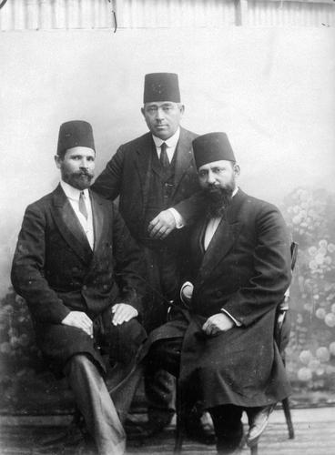Portret van Chaim Bograsjov, Meir Dizengoff (burgemeester van Tel Aviv) en Ben Tsion Mossinson
