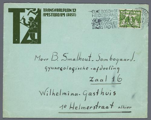 Enveloppe met in linker bovenhoek het zelfontworpen vignet van Eli Smalhout.