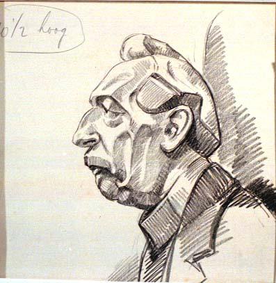 Buste van man en profile naar links, met 'gebeeldhouwde' kop, revers, kraag op sokkel, op 8 cm hoogte een verticale potlood- streep.