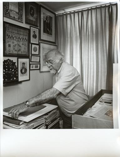 [Jaap van Velzen te midden van zijn verzameling judaïca]