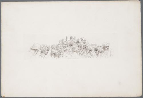 studie van verschillende vrouwen- en mannenhoofden; pyramidale compositie