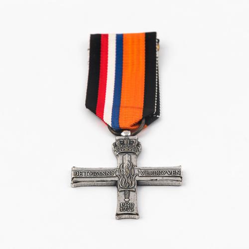 Een vierarmig zilveren kruis. Op de horizontale arm is de tekst 'de tyranny verdryven' vermeld, op de verticale arm staan de jaartallen 1940 1945 onder een vlammend zwaard en een kroontje. Het kruis hangt aan een lint met de kleuren van de Nederlandse vlag en oranje en zwarte banen. Het grootste draagteken is een kleinere uitvoering van het kruis, het kleinste draagteken bestaat uit een opgerold stukje lint op een koperen clipje. De onderscheidingstekens zijn opgeborgen in een kunststof doosje.