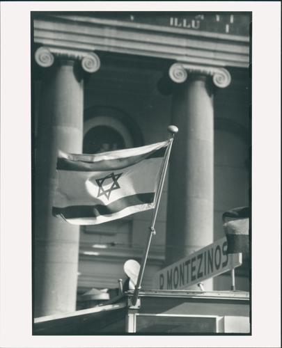 [Vlag van Israël op de kar van ijsverkoper Izaak Montezinos op het Waterlooplein]