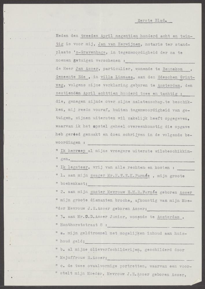 D015957: Benoeming van Tobias Michael Carel Asser tot lid van de Académie Royale des Sciences, des Lettres et des Beaux-Arts de B [...]