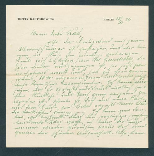 D016034: Brieven en postkaarten (30) van Betty en Hugo Kantorowicz aan hun dochter Ruth Margot en aan Fritz Stein, 1926-1928